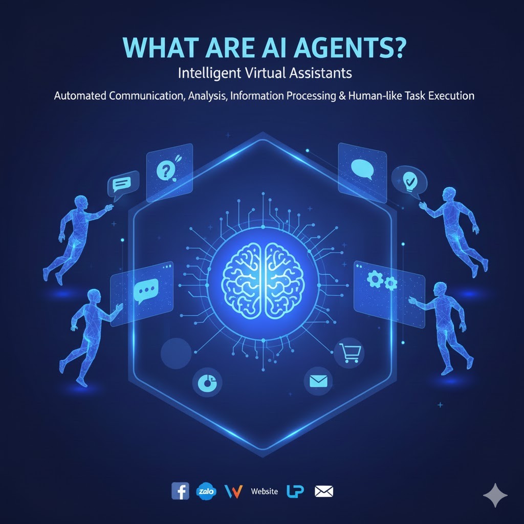 AI Agents là các “trợ lý ảo thông minh” có khả năng tự động giao tiếp, phân tích yêu cầu, xử lý thông tin và thực hiện tác vụ giống con người. Không chỉ đơn thuần là chatbot trả lời theo kịch bản, AI Agents có thể: