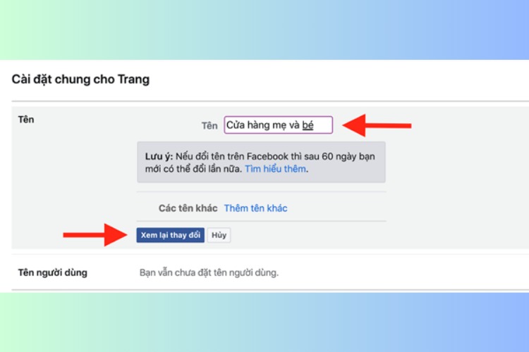 - Bước 4: Đổi tên như ý muốn của bạn (Hãy đảm bảo rằng tên mới phù hợp với quy định và không vi phạm bất kỳ điều gì), sau đó xem lại thay đổi.