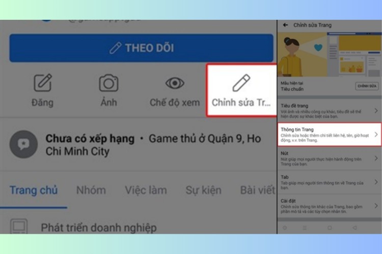 - Bước 4: Bấm chọn Cài đặt và chọn Chỉnh sửa trang.