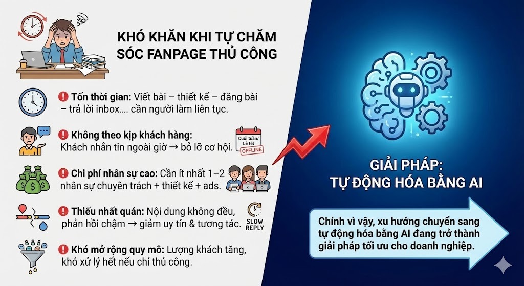 Vì sao doanh nghiệp nên chuyển sang tự động hóa Fanpage bằng AI Agents?